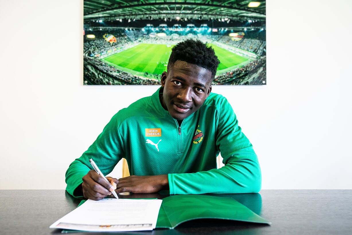 Rapid und Salzburg vermeldeten auch Dienstagmittag Neuigkeiten. Nur 38 Minuten lagen zwischen der Bekanntgabe Rapids über die Verpflichtung des 21 jährigen ivorischen Innenverteidigers Ange Ahoussou (Bild) von Pau, dem Neunten der zweiten Liga Frankreichs, und der von Salzburg über die vorzeitige Vertragsverlängerung mit dem 18 jährigen französischen Abwehrspieler Joane Gadou bis 2029. Vor drei Wochen, am 11. Jänner, als Rapids Vorbereitung auf die Frühjahrssaison begann, schloss Sportvorstand Markus Katzer nicht aus, dass es keine Neuverpflichtung geben wird. Wenige Tage später unterschrieb der noch verletzte Mittelfeldspieler Romeo Amane, Montag Ahoussou, ein Linksfuß wie Serge Raux Yao, der in Rapids Innenverteidigung gesetzt ist. Katzer nennt dies voraussehende Kaderplanung. Das bedeutet: Er rechnet, dass Raux Yao und Mittelfeldspieler Mamadou Sangare Rapid im Sommer verlassen werden.