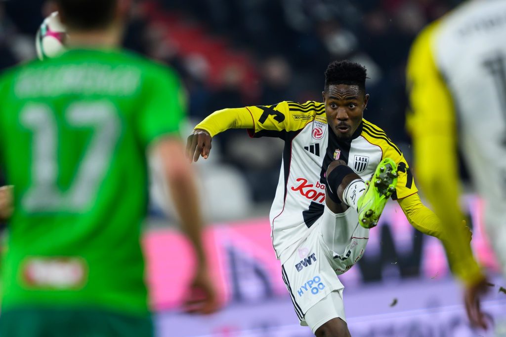 Noch mehr Drama als das 1:1 (1:0) zwischen Ried und dem LASK im oberösterreichischen Derby am Samstag wird das Wiener Derby am Sonntag nicht bieten können. Ried führte im strömenden Regen durch ein Volleytor des Südafrikaners Antonio van Wyk nach einer missglückten Kopfball-Abwehr von Samuel Adeniran im eigenen Strafraum bis zur 97. Minute 1:0, der LASK kam als die nach der Pause bessere Mannschaft durch Kapitän Sascha Horvath und des erstmals von Beginn an aufgebotenen Innenverteidiger Xavier Mbuyamba nur zu den Aluminiumtreffern elf und zwölf in dieser Saison, schienen vor der ersten Niederlage seit der Rückkehr von Trainer Didi Kühbauer zu stehen, ehe es nach einem Hands von Ante Bajic im Luftduell, auf das Referee Christian Petru-Ciochirca durch VAR Josef Spurny hingewiesen wurde, Elfmeter für die Linzer gab. Sasa Kalajdzic nahm sich den Ball, ließ einige verbale Attacken der Rieder über sich ergehen, gab ihn dann den Ball an Joker Moses Usor, (Bild), dem eingeteilten Elfmeterschützen weiter, der Riedes Tormann Andreas Leitner bezwang. Passierte erst nach sechs Minuten Wartezeit mit der letzten Aktion des Spiels. Rieds Trainer Maximilian Senft war trotz Enttäuschung stolz auf die Defensivleistung seiner Mannschaft und lobte Kalajdzic: „So wie er in Form ist, hat er in unserer Liga eigentlich nichts verloren!“ Aber gehört er in Österreichs WM-Kader.