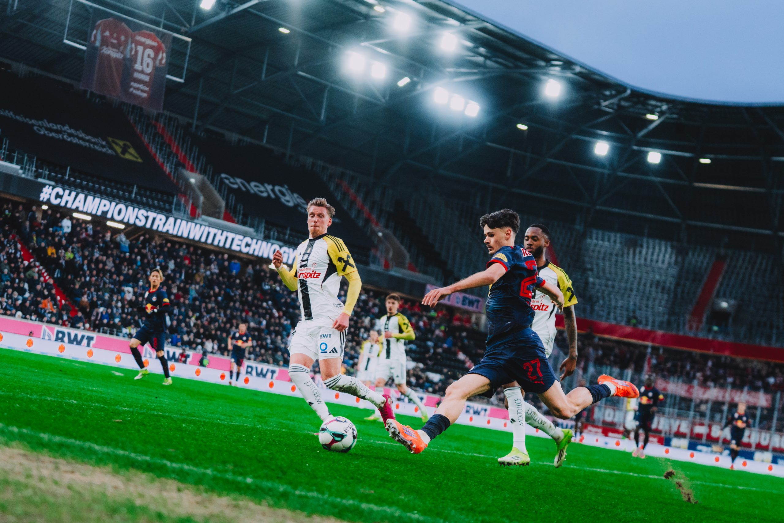 Salzburg steht damit auch theoretisch fix in der Meisterrunde. Das schaffte auch Sturm Graz durch den 1:0 (1:0)-Arbeitssieg gegen den Letzte Blau Weiß Linz, durch den der Meister die Wiener Austria und den LASK überholte, mit zwei Punkten Rückstand auf Salzburg Zweiter ist. Das Goldtor fiel durch einen von Belmin Beganovic verwandelten Elfmeter. Erstmals spielte der im Jänner verpflichtete Georgier Gizo Mamagashvili, traf bei 0:0 mit einem Kracher die Latte.