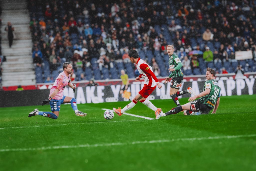 Es war nur der dritte Pflichtsieg hintereinander, den Red Bull Salzburg mit dem 4:1 (2:1) gegen Aufsteiger Ried vor 8352 Zuschauern feierte. Aber doch auch ein besonderer. Nicht, weil er mit Rapifs Hilfe zur Tabellenführung verhalf. Sondern, weil es acht Neue in der Startelf gegenüber dem mühsamen Cupsieg gegen WSG Tirol drei Tage zuvor gab. Ein Zeichen, was der Salzburger Kader hergibt. Da Teamtormann Alexander Schlager muskuläre Proleme hatte, kam der 18 jährige Christian Zawieschitzky, der bereits bei der Klub-WM im Einsatz war, zu seinem Bundesligadebüt. Bei dem das bisher schnellste Tor der Saison fiel: Clement Bischoff traf bereits nach 27 Sekunden. Besser geht´s nicht. Alles schien für Salzburg zu laufen, als plötzlich nach 34 Minuten der Ausgleich durch das sechste Saisontor von Kingstone Mutandwa fiel. Von da an war Salzburg gar nicht mehr souverän, der Aufsteiger, bei dem aus privaten Gründen Trainer Max Senft fehlte, durch Assistent Eduard Buxmann vertreten wurde, besser. Aber Salzburg traf nicht nur mit der ersten Aktion des Spiels, sondern auch mit der letzten vor der Pause. Durch den Japaner Soto Kitano (Bild).